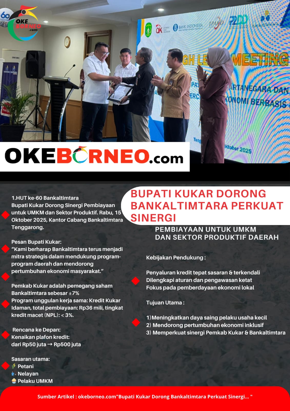 “Kami ingin sinergi ini terus berjalan dalam kerangka pembangunan ekonomi yang inklusif, berkelanjutan, dan berpihak kepada masyarakat kecil,” tutupnya.(adv/prokomkukar/atr)