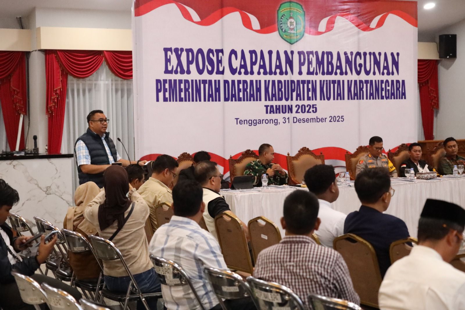 okeborneo.com, KUTAI KARTANEGARA – Pemerintah Kabupaten Kutai Kartanegara (Kukar) menggelar ekspos capaian program pembangunan tahun 2025 yang dipaparkan langsung oleh Bupati Kukar, dr. Aulia Rahman Basri. Kegiatan tersebut berlangsung di Pendopo Odah Etam Tenggarong, Rabu malam (31/12/2025), dan dilaksanakan secara luring serta daring.