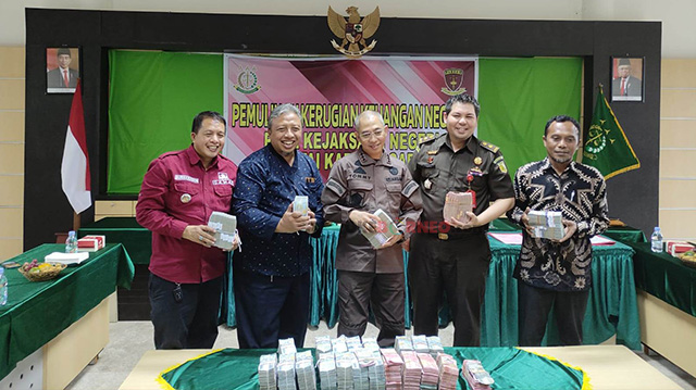 okeborneo.com, KUTAI KARTANEGARA – Kejaksaan Negeri (Kejari) Kutai Kartanegara (Kukar) berhasil mengembalikan kerugian negara sebesar Rp 1,4 miliar. Uang tersebut merupakan hasil penyitaan dari penyelidikan kelebihan pembayaran 52 proyek pembangunan jalan di Kecamatan Samboja tahun anggaran 2017 dan kasus tindak pidana korupsi mantan Direktur PT Mahakam Gerbang Raja Migas (MGRM).