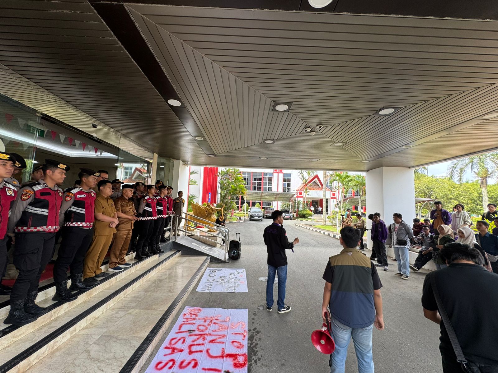 Aksi berlangsung damai, diiringi orasi dan penyampaian aspirasi secara terbuka di hadapan pejabat yang hadir.