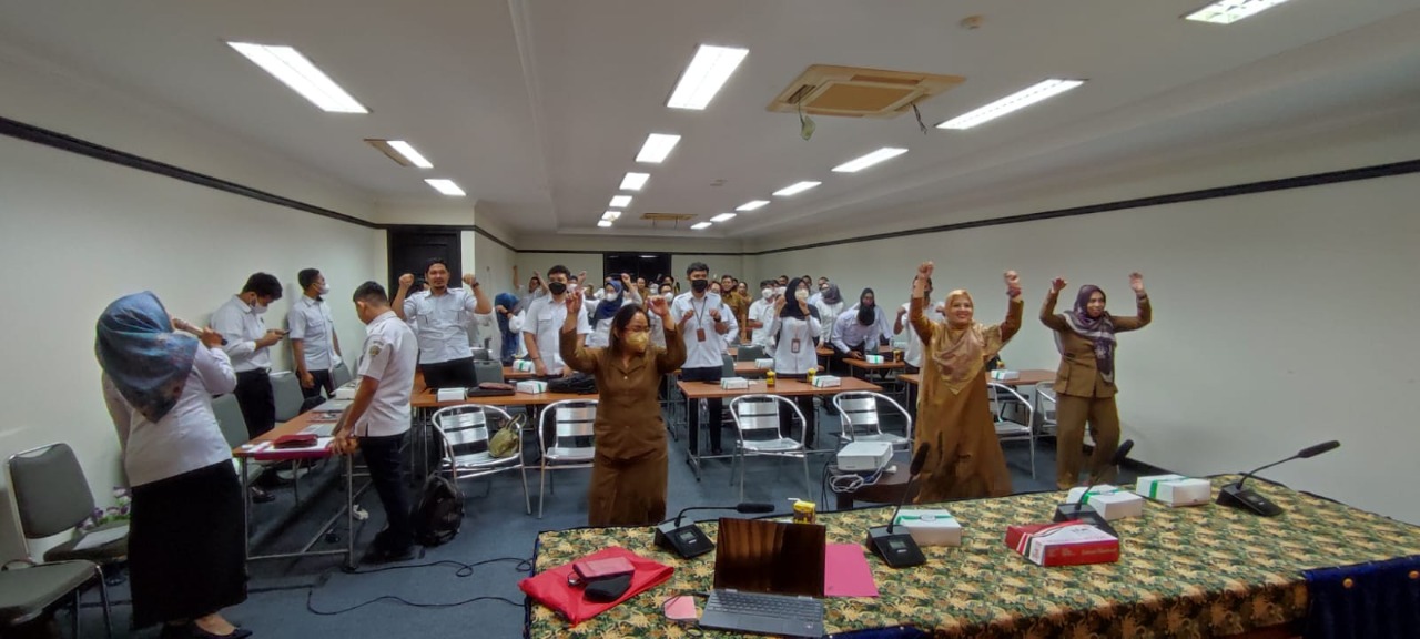 Seperti saat pelatihan bimbingan teknis penulisan yang digelar Senin (30/5) siang tadi, sebelum kegiatan berakhir, semua peserta diajak melakukan senam bersama. Tentu saja, selain membuat tubuh kembali bugar, juga untuk menciptakan suasana lebih ceria.